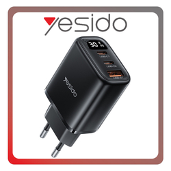 Yesido YC69 Travel Fast Charger With Display 30W, 3A, Φορτιστής Ταξιδιού Γρήγορης Φόρτισης Με Οθόνη 30 Watt 3A, 1 x USB-A / 2 x USB-C Black Μαύρο