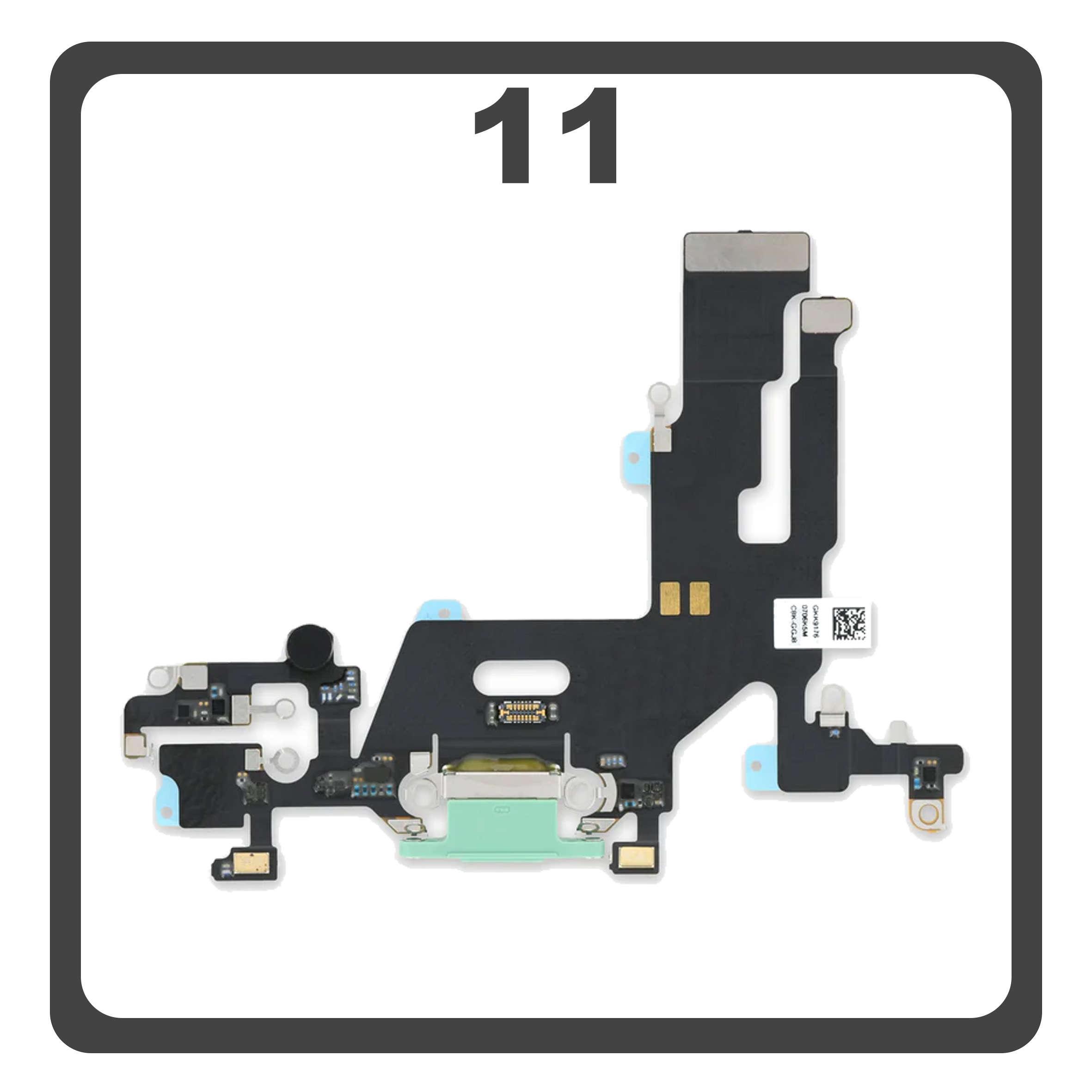 Γνήσια Original For iPhone 11, iPhone11 (A2221, A2111), Charging Dock Connector Lightning Flex With Board Καλωδιοταινία Κονέκτορας Φόρτισης + Microphone Μικρόφωνο Green Πράσινο Pulled