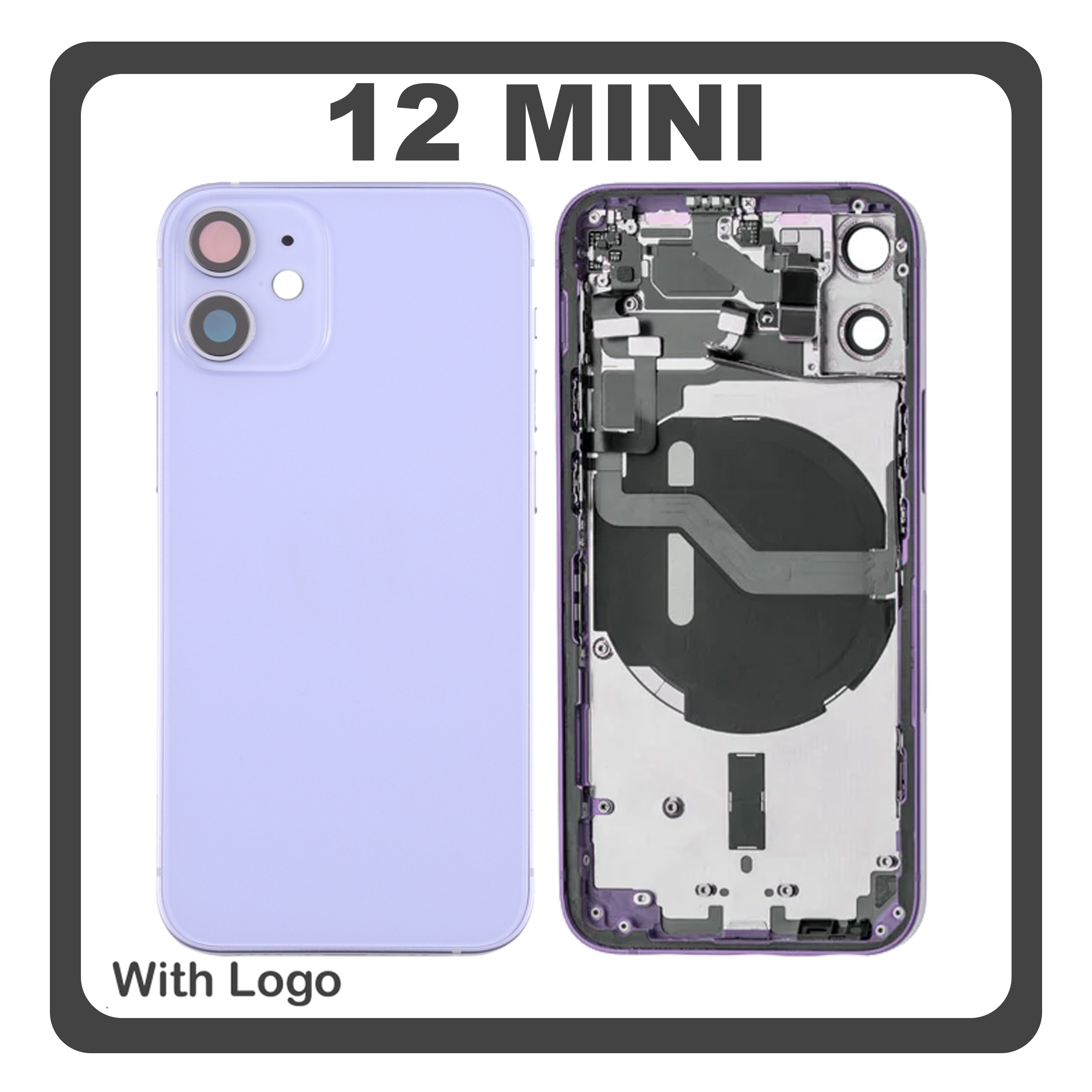 HQ OEM Συμβατό Για Apple iPhone 12 Mini (A2399, A2176, A2398, A2400) Rear Back Battery Cover Middle Frame- Housing + Power Button + Volume Button Flex Cable + Sim Card Tray + Flashlight Flex + NFC Purple