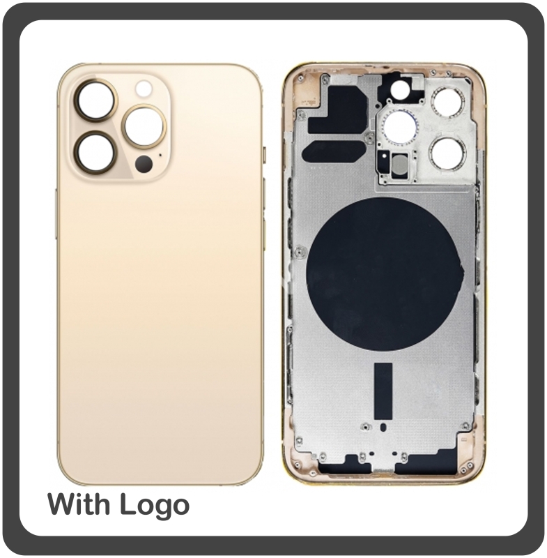 HQ OEM Συμβατό Για Apple iPhone 13 Pro (A2638, A2483, A2636, A2639) EU Version Rear Back Battery Cover Middle Frame- Housing Πίσω Κάλυμμα Καπάκι Πλάτη Μπαταρίας - Σασί + Side Keys Πλαινά πλήκτρα + Sim Tray Θήκη Κάρτας Gold Χρυσό (Premium A+)