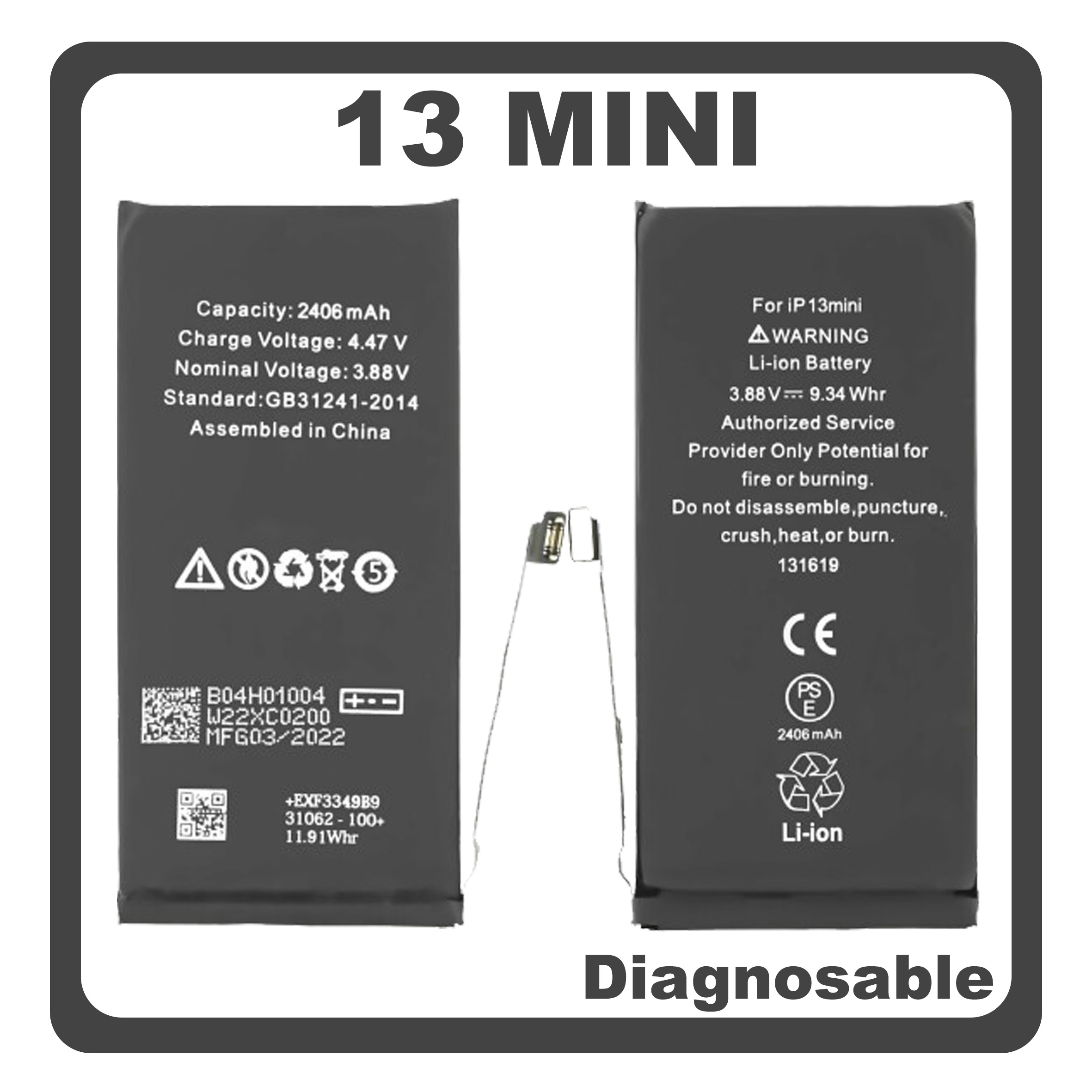 HQ OEM Συμβατό Με Apple iPhone 13 Mini (A2628, A2481) Battery Μπαταρία Li-Ion 2438 mAh Diagnosable Bulk (Premium A+)