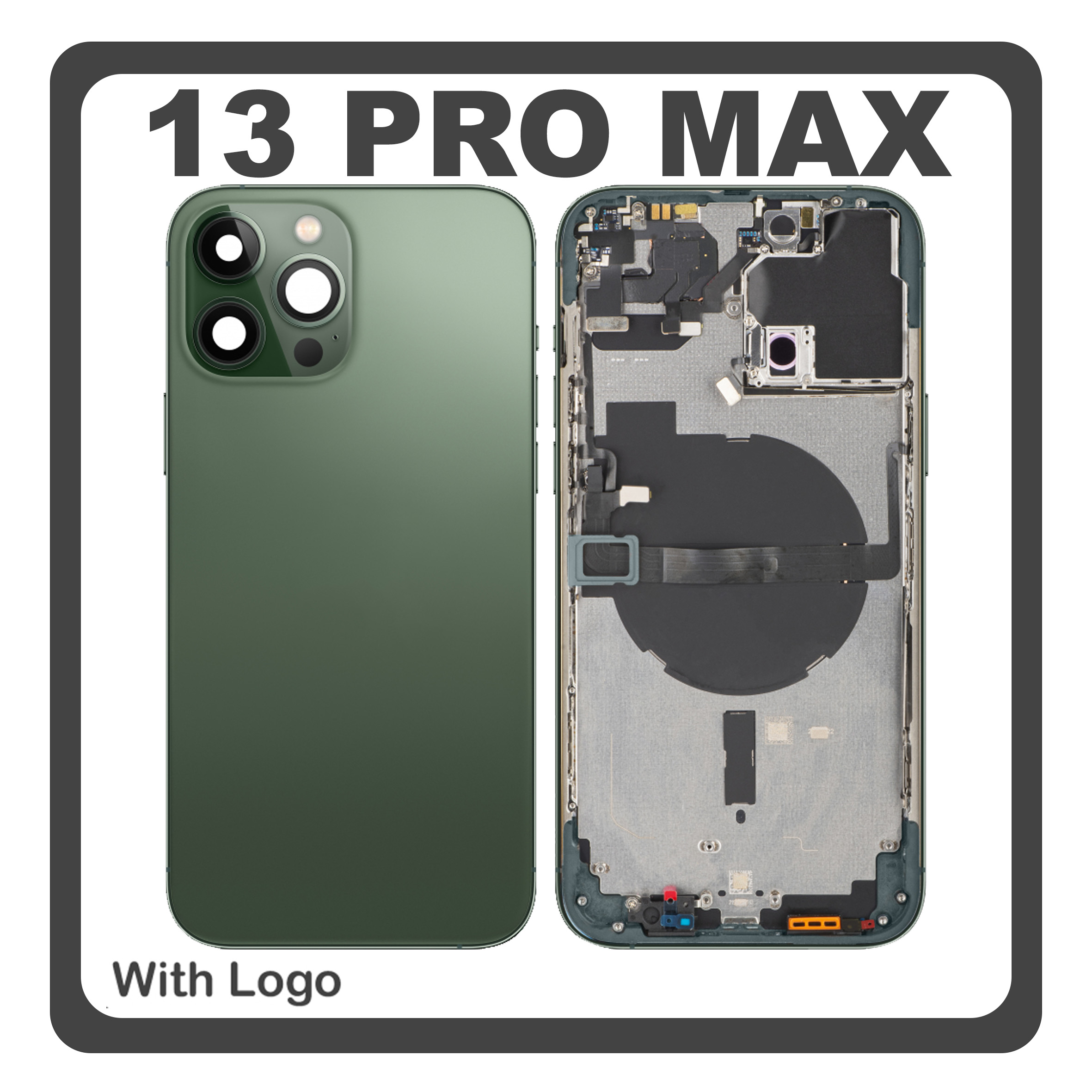 HQ OEM Συμβατό Με Apple iPhone 13 Pro Max (A2643, A2484) Rear Back Battery Cover Middle Frame- Housing Πίσω Κάλυμμα Καπάκι Πλάτη Μπαταρίας + Power Button + Volume Button Flex Cable + Sim Card Tray + Flashlight Flex + NFC Green Πράσινο (Premium A+)