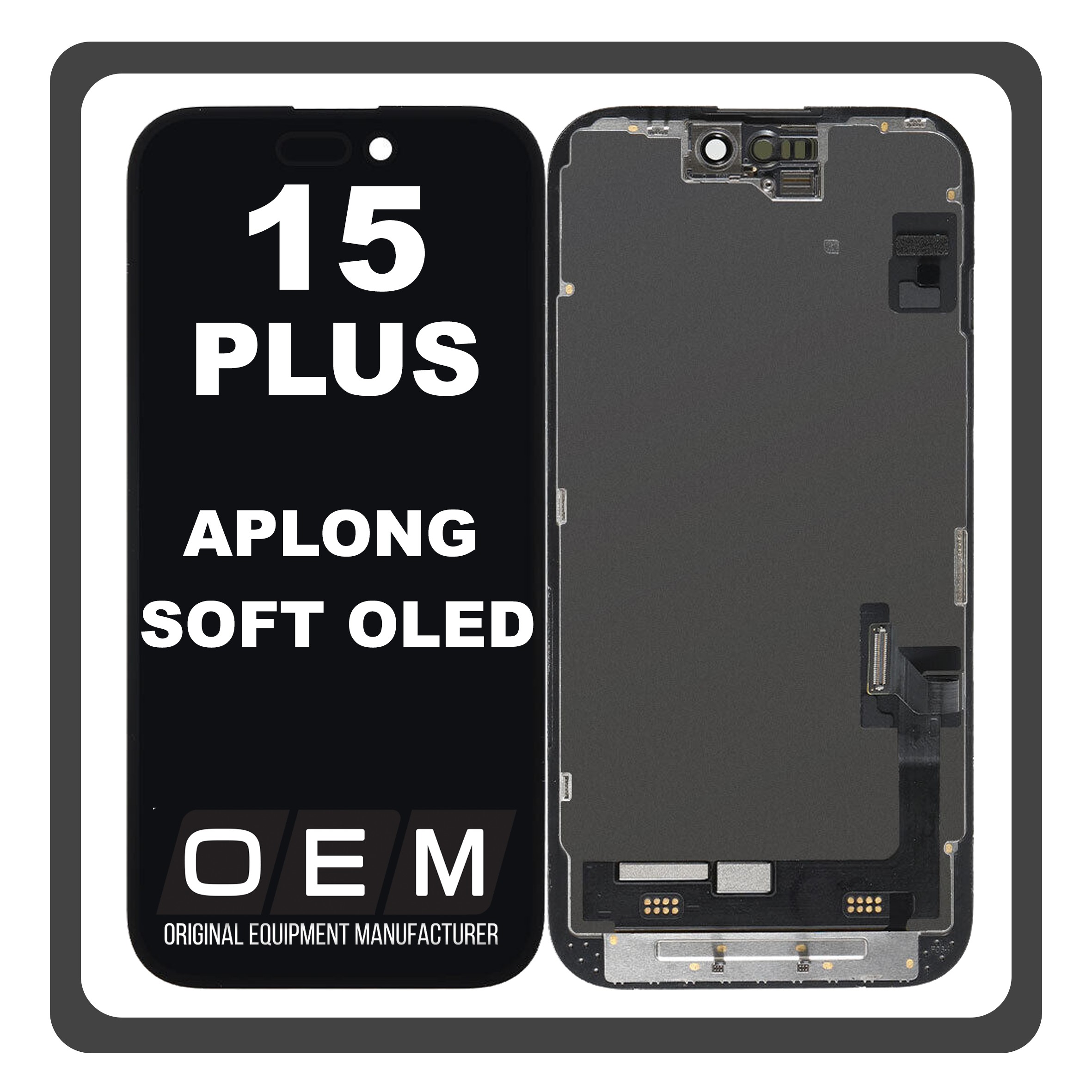 HQ OEM Συμβατό Με iPhone 15 Plus, iPhone 15+ (A3094, A2847) APLONG SOFT OLED LCD Display Screen Assembly Οθόνη + Touch Screen Digitizer Μηχανισμός Αφής Diagnosable Black Μαύρο (Premium A+) (Lifetime Warranty Για Συνεργατες B2B)