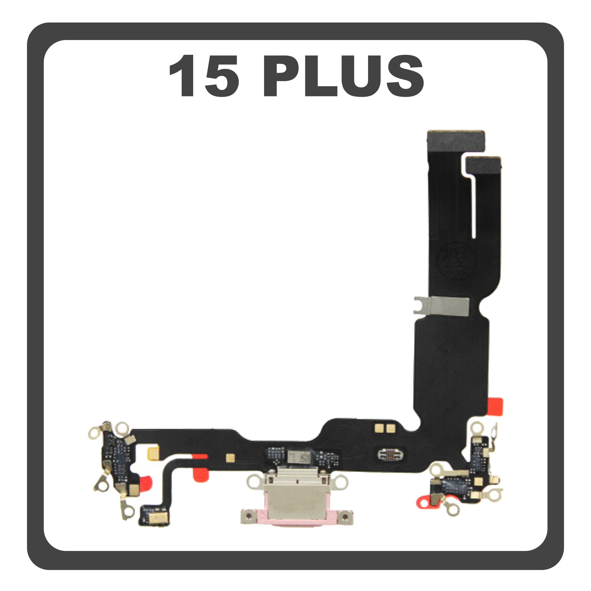 Original For Γνήσιο Για Apple iPhone 15 Plus, iPhone 15+ (A3094, A2847) Charging Dock Connector Type C Flex Καλωδιοταινία Κονέκτορας Φόρτισης + Microphone Μικρόφωνο Pink Ροζ (Pulled)