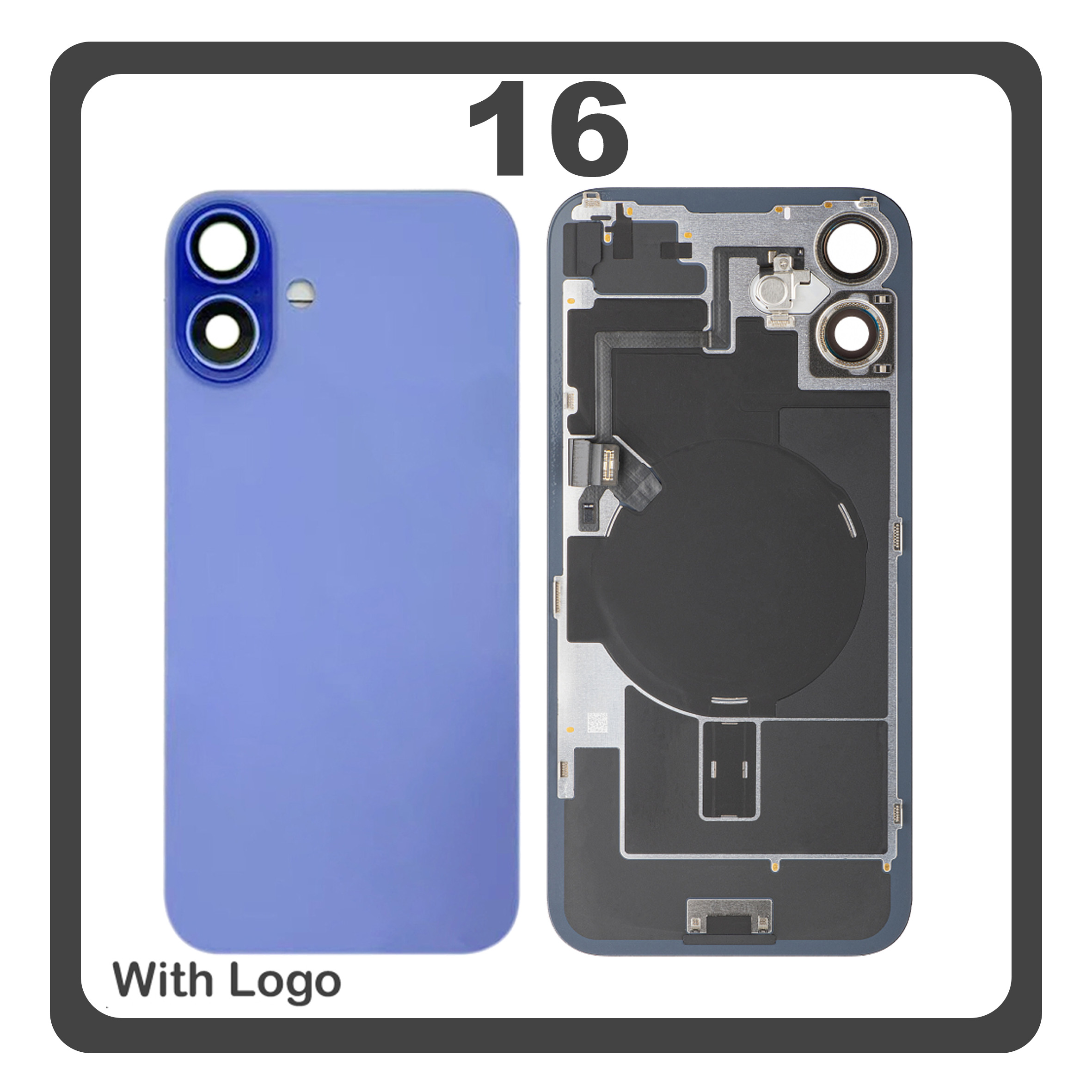 contents: | Rear Back Battery Cover Πίσω Κάλυμμα Καπάκι Πλάτη Μπαταρίας + Middle Frame - Housing + Metal Plate + Camera Lens Τζαμάκι Κάμερας + Magsafe + NFC + Flashlight Flex Ultramarine Μπλε |