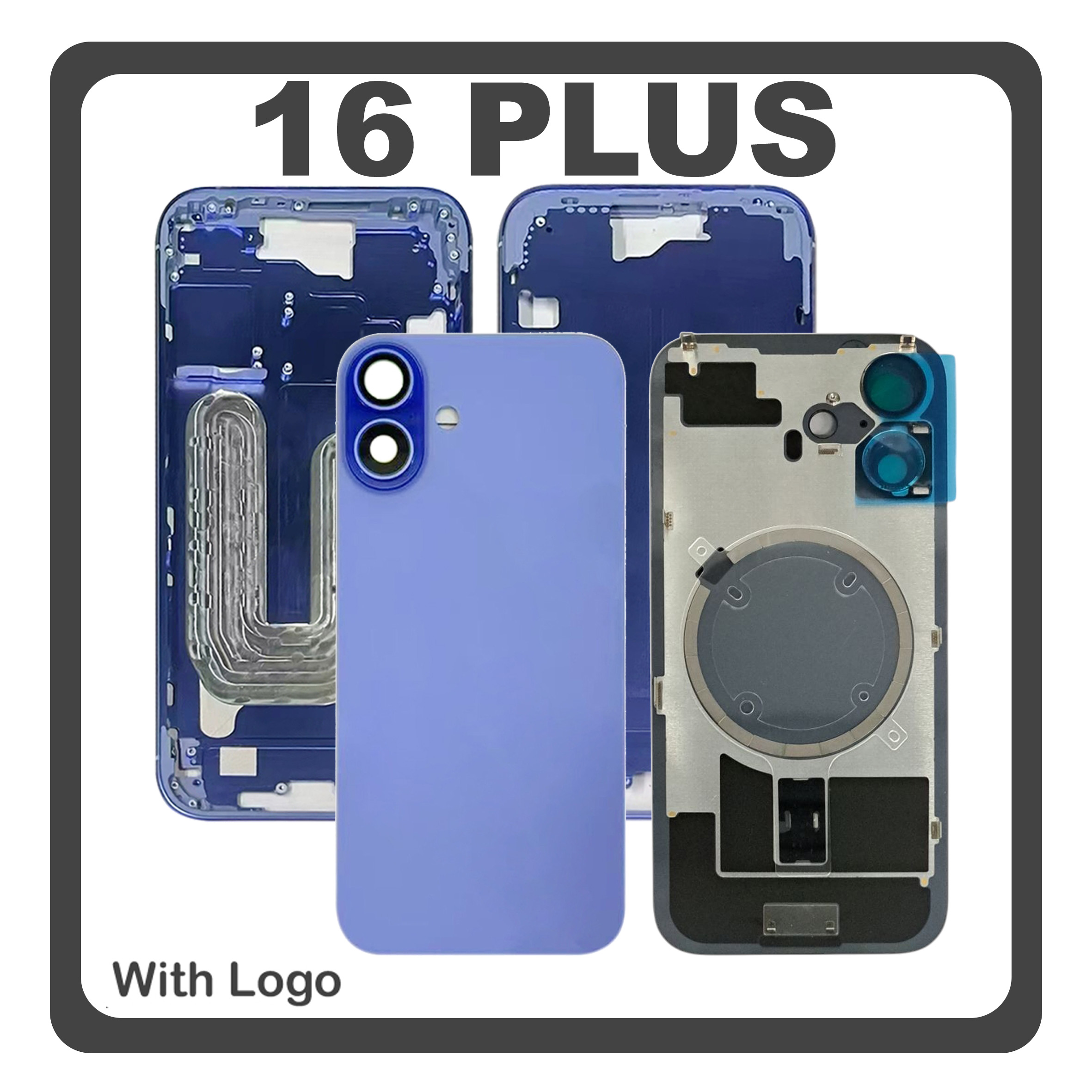 HQ OEM Συμβατό Με Apple iPhone 16 Plus, iPhone 16+ (A3290, A3082) Rear Back Battery Cover + Middle Frame - Housing + Camera Lens + Magsafe Ultramarine Μπλε (Premium A+)