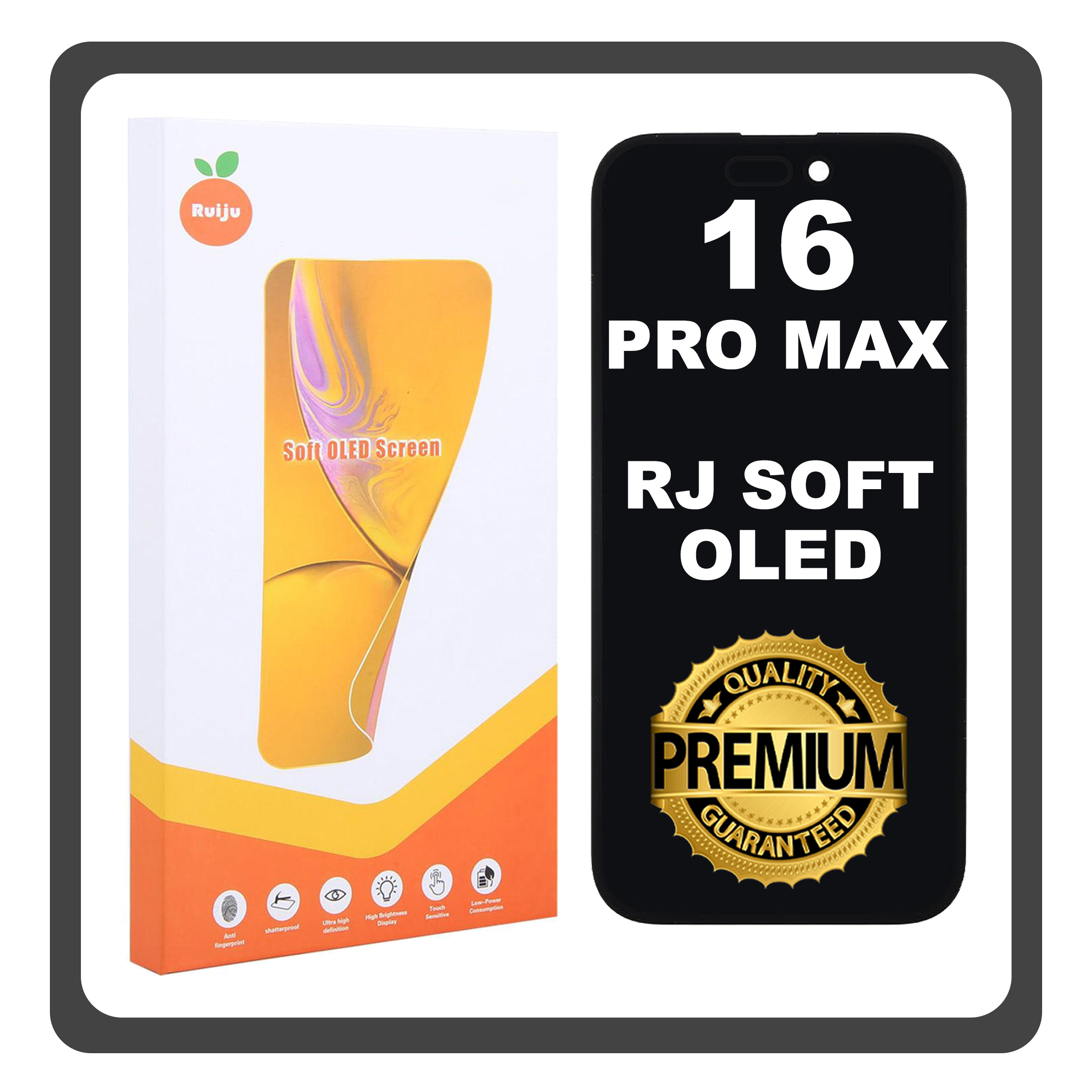 HQ OEM Συμβατό Με Apple iPhone 16 Pro Max (A3296, A3084) RJ SOFT OLED LCD Display Screen Assembly Οθόνη + Touch Screen Digitizer Μηχανισμός Αφής With IC Removable Black Μαύρο (Premium A+)