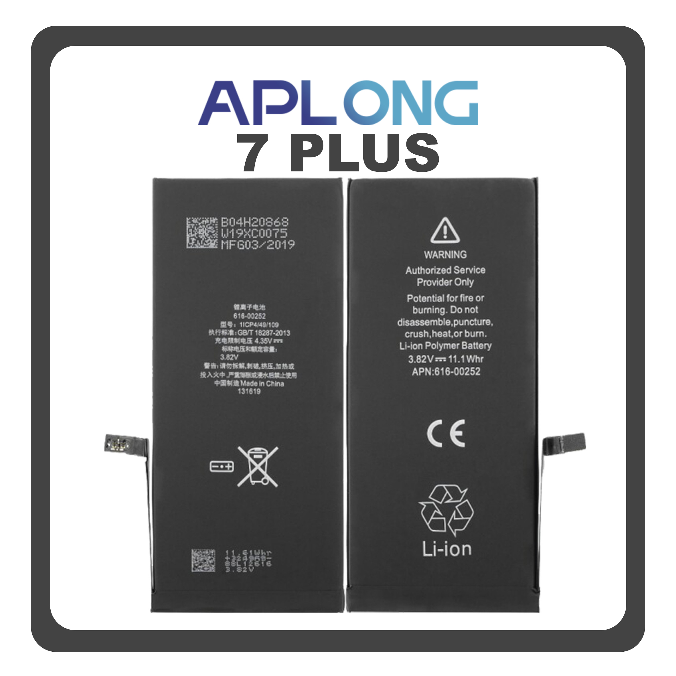HQ OEM Συμβατό Με Apple iPhone 7 Plus, iPhone 7+ (A1661, A1784) APLONG Battery Μπαταρία High Capacity Li-Ion 3400 mAh (Premium A+) (1 Year Warranty Για Συνεργατες B2B)