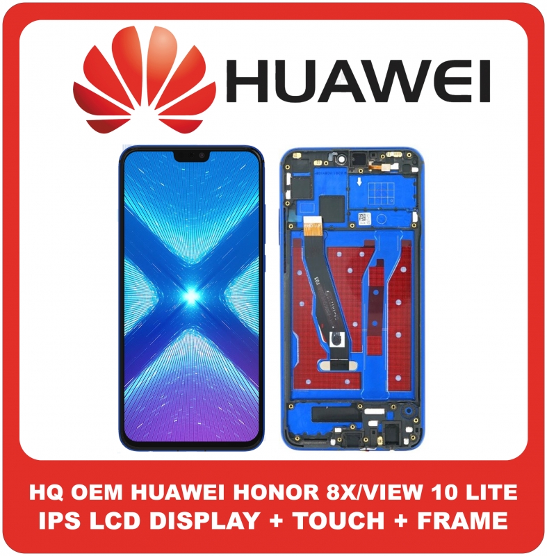 HQ OEM Συμβατό Για Huawei Honor 8X, Honor View 10 Lite (JSN-LX1, JSN-L21, JSN-L42) IPS LCD Display Screen Assembly Οθόνη + Touch Screen Digitizer Μηχανισμός Αφής + Frame Bezel Πλαίσιο Σασί Blue Μπλε (Premium A+)