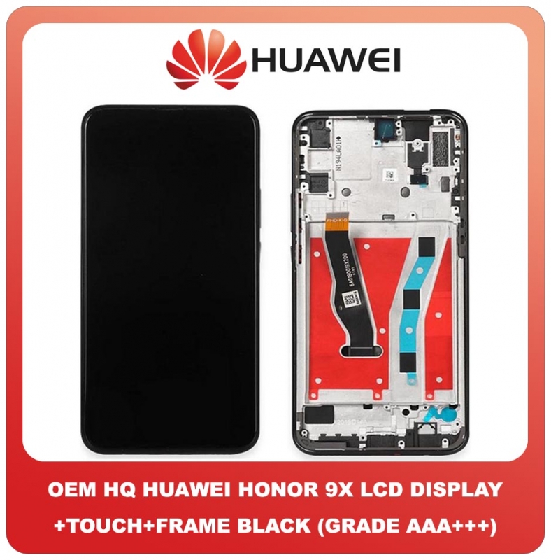 OEM HQ Huawei Honor 9X (STK-LX1) LCD Display Screen Οθόνη + Touch Screen DIgitizer Μηχανισμός Αφής + Frame Bezel Πλαίσιο Black Μαύρο (Premium A+)