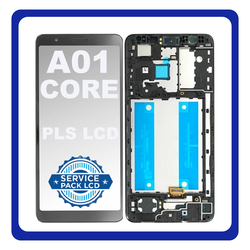 Γνήσια Original Samsung Galaxy A01 Core 2020 A013 (A013F, A013F/DS) PLS IPS LCD Display Screen Assembly Οθόνη + Touch Screen Digitizer Μηχανισμός Αφής + Frame Bezel Πλαίσιο Σασί Black Μαύρο GH82-23392A GH82-23561A (Service Pack By Samsung)