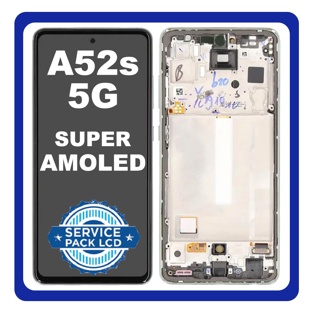 Γνήσια Original Samsung Galaxy A52s 5G (SM-A528B, SM-A528B/DS) Super AMOLED LCD Display Screen Assembly Οθόνη + Touch Screen Digitizer Μηχανισμός Αφής + Frame Bezel Πλαίσιο Σασί Awesome Mint Green Πράσινο GH82-26861E (Service Pack By Samsung)