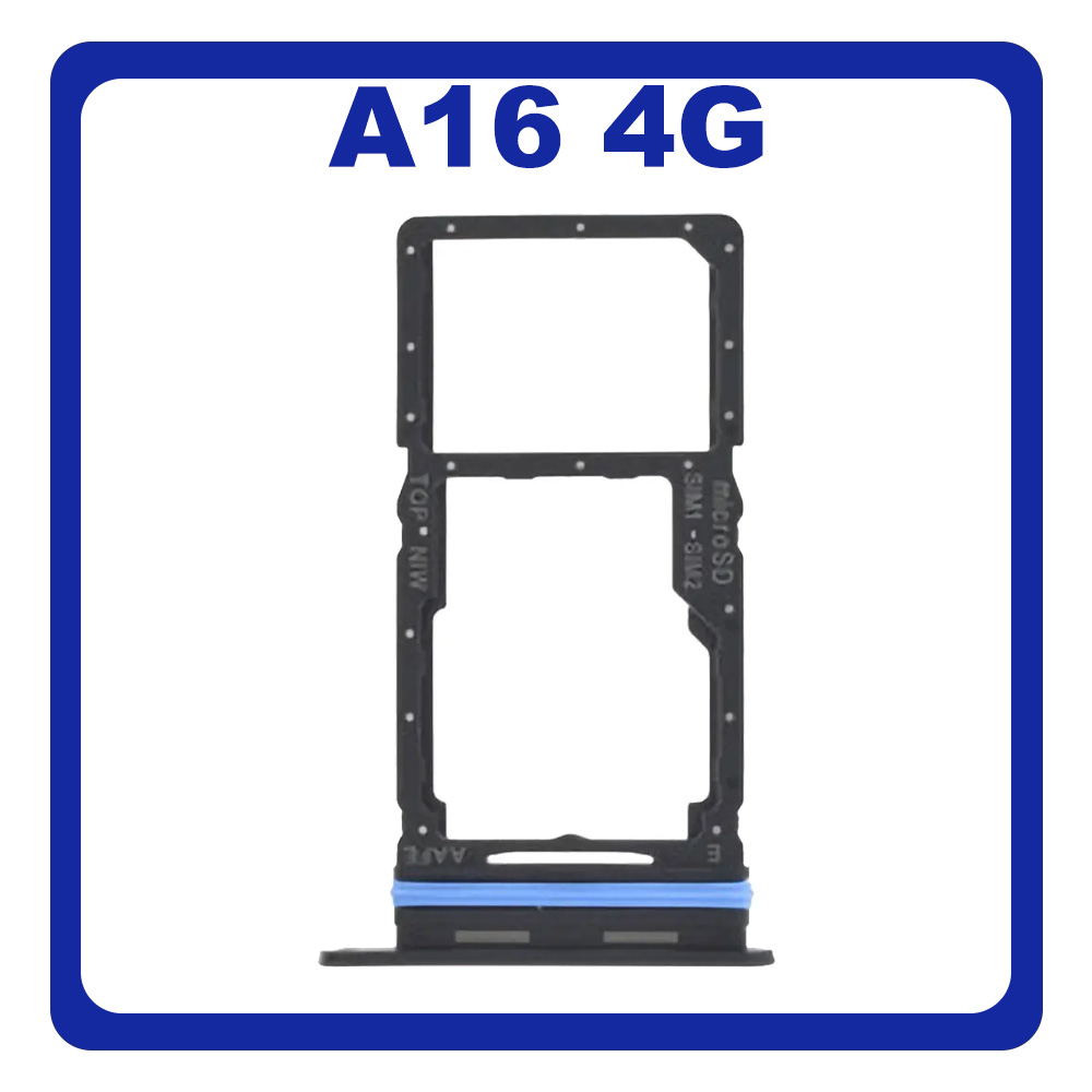 Γνήσια Original Samsung Galaxy A16 4G (SM-A165F, SM-A165F/DS) SIM Card Tray + Micro SD Tray Slot Υποδοχέας Βάση Θήκη Κάρτας SIM Black Μαύρο GH98-49822E (Service Pack By Samsung)