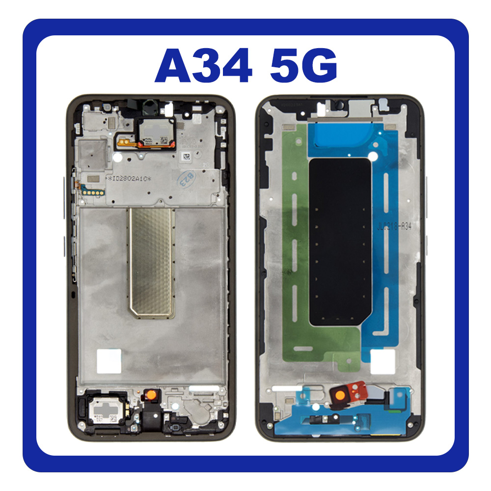 Γνήσια Original Samsung Galaxy A34 (SM-A346E, SM-A346B) LCD Front Housing LCD Middle Frame Bezel Plate Μεσαίο Πλαίσιο Awesome Graphite GH82-31312A (Service Pack By Samsung)