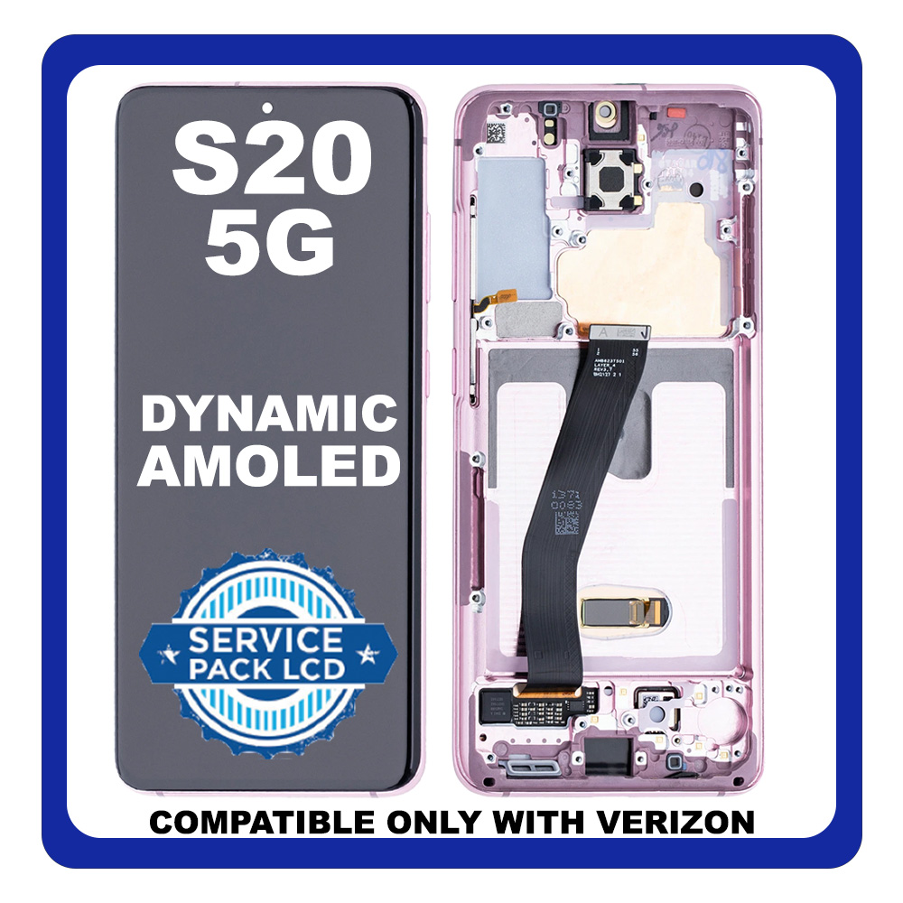 Γνήσια Original Samsung Galaxy S20 5G (SM-G981V), US Version Dynamic AMOLED Οθόνη LCD Display Screen + Touch Screen DIgitizer Μηχανισμός Αφής + Frame Πλαίσιο GH82-22123C GH82-22131C Cloud Pink (Service Pack)