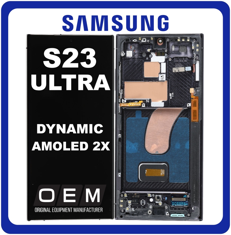 HQ OEM Συμβατό Με Samsung Galaxy S23 Ultra 5G (SM-S918B, SM-S918B/DS) Dynamic AMOLED 2X LCD Display Screen Assembly Οθόνη + Touch Screen Digitizer Μηχανισμός Αφής + Frame Bezel Πλαίσιο Σασί Phantom Black Μαύρο (Premium A+)