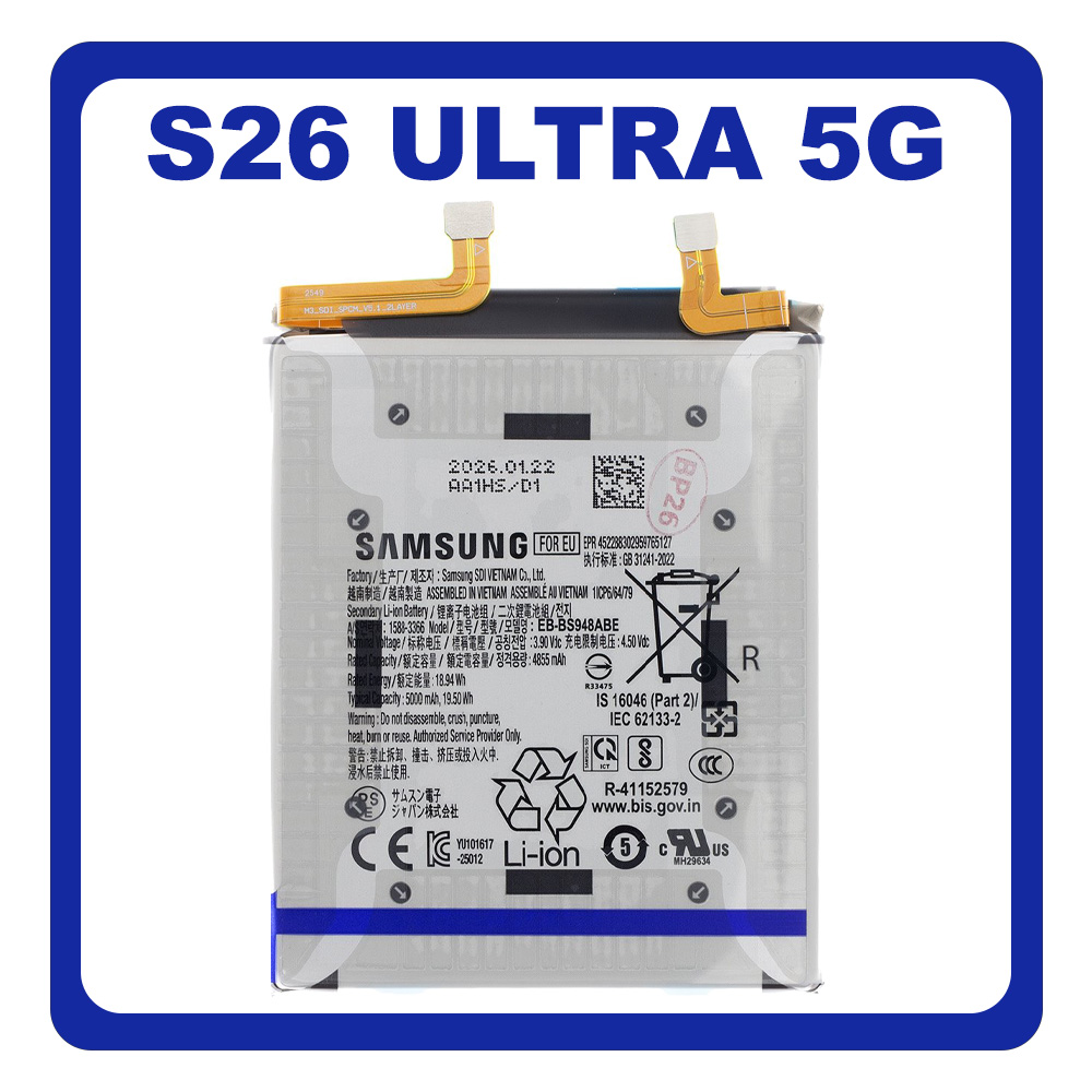 Γνήσια Original Samsung Galaxy S26 Ultra 5G (SM-S948B, SM-S948B/DS) EB-BS948ABE Battery Μπαταρία Li-lon 5000mAh GH82-38878A (Service Pack By Samsung)