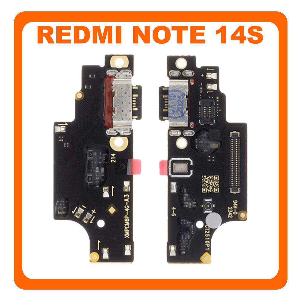 HQ OEM Συμβατό Με Xiaomi Redmi Note 14S (2502FRA65G), USB Type-C Charging Dock Connector Flex Sub Board, Καλωδιοταινία Υπό Πλακέτα Φόρτισης + Microphone Μικρόφωνο (Premium A+)