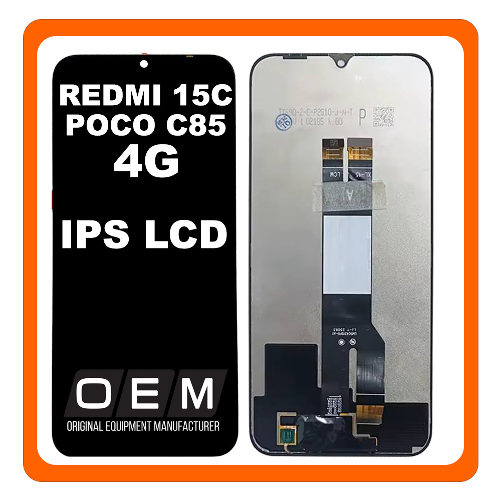 HQ OEM Συμβατό Με Xiaomi Redmi 15C 4G (25078RA3EA, 25078RA3EL), Poco C85 (25078PC3EG) IPS LCD Big Flex Global Version Display Screen Assembly Οθόνη + Touch Screen Digitizer Μηχανισμός Αφής Black Μαύρο (Premium A+)