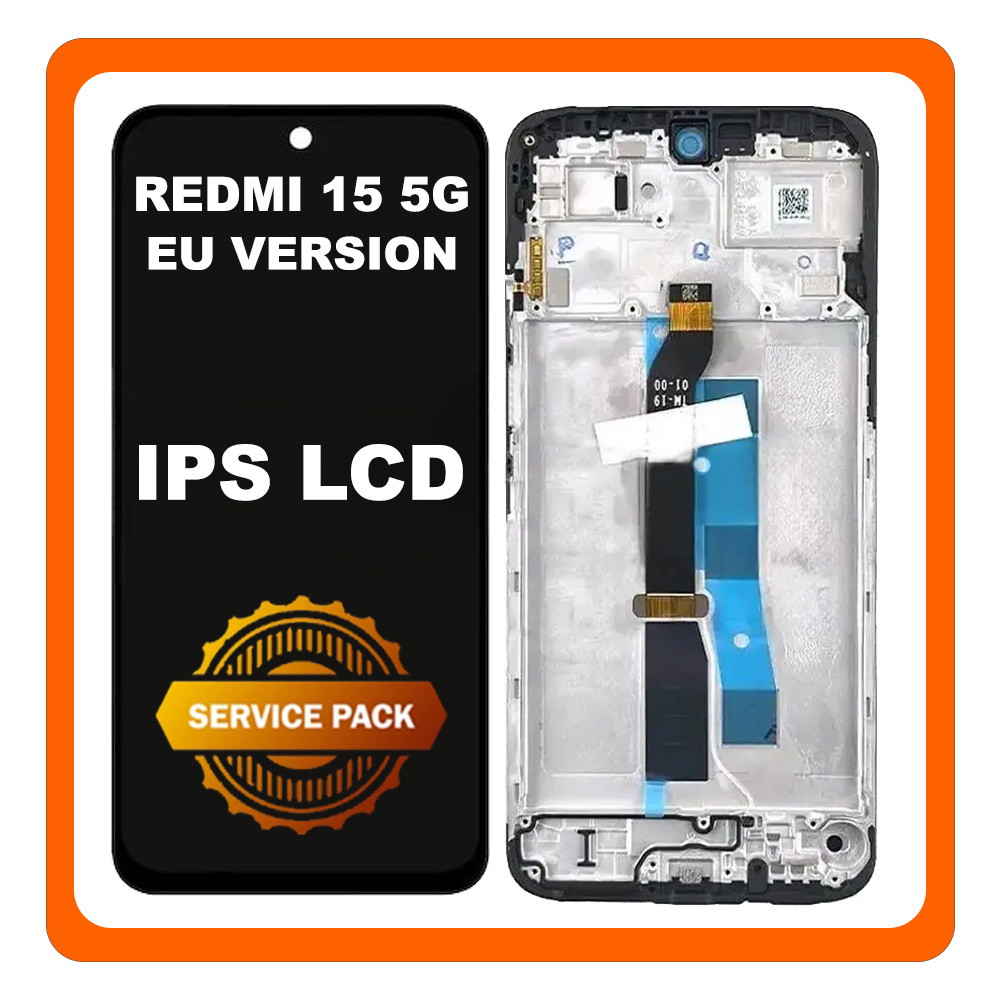 Γνήσια Original Xiaomi Redmi 15 5G (25057RN09E) IPS LCD Display Screen Assembly Οθόνη + Touch Screen Digitizer Μηχανισμός Αφής + Frame Bezel Πλαίσιο Σασί Black Μαύρο 56002100O19000 / 56002600O1900 Grade B (Service Pack By Xiaomi)