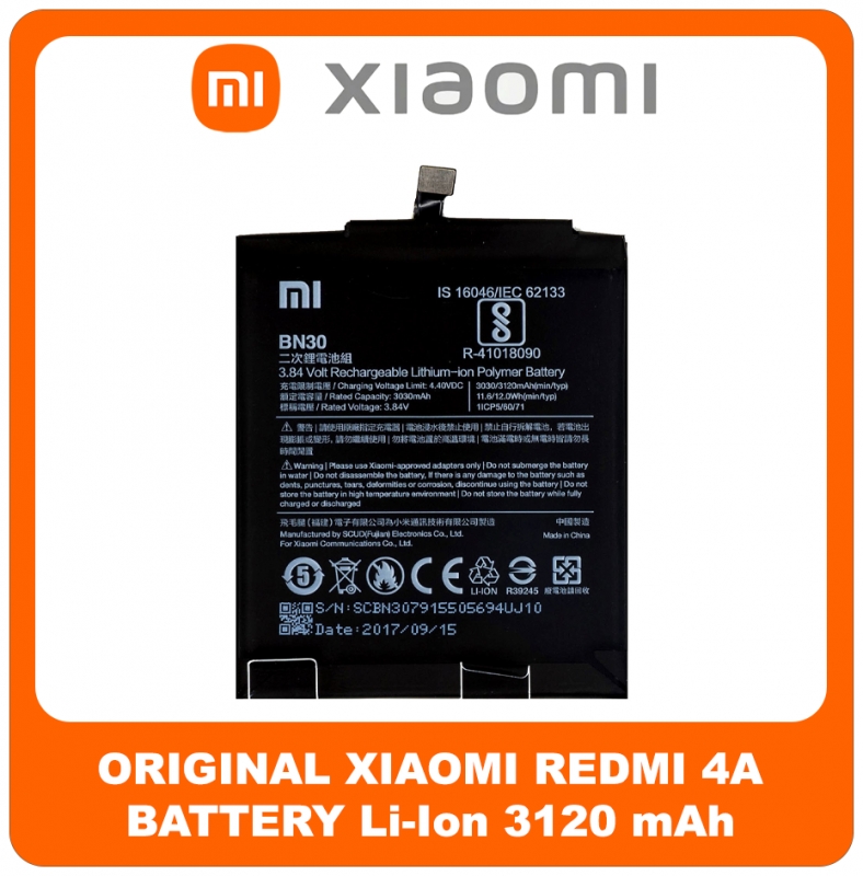 Γνήσια Original Xiaomi Redmi 4A, Redmi4A (2016117) BN30 Battery Μπαταρία Li-Ion 3120 mAh (Bulk) 290300003001 (Service Pack By Xiaomi)