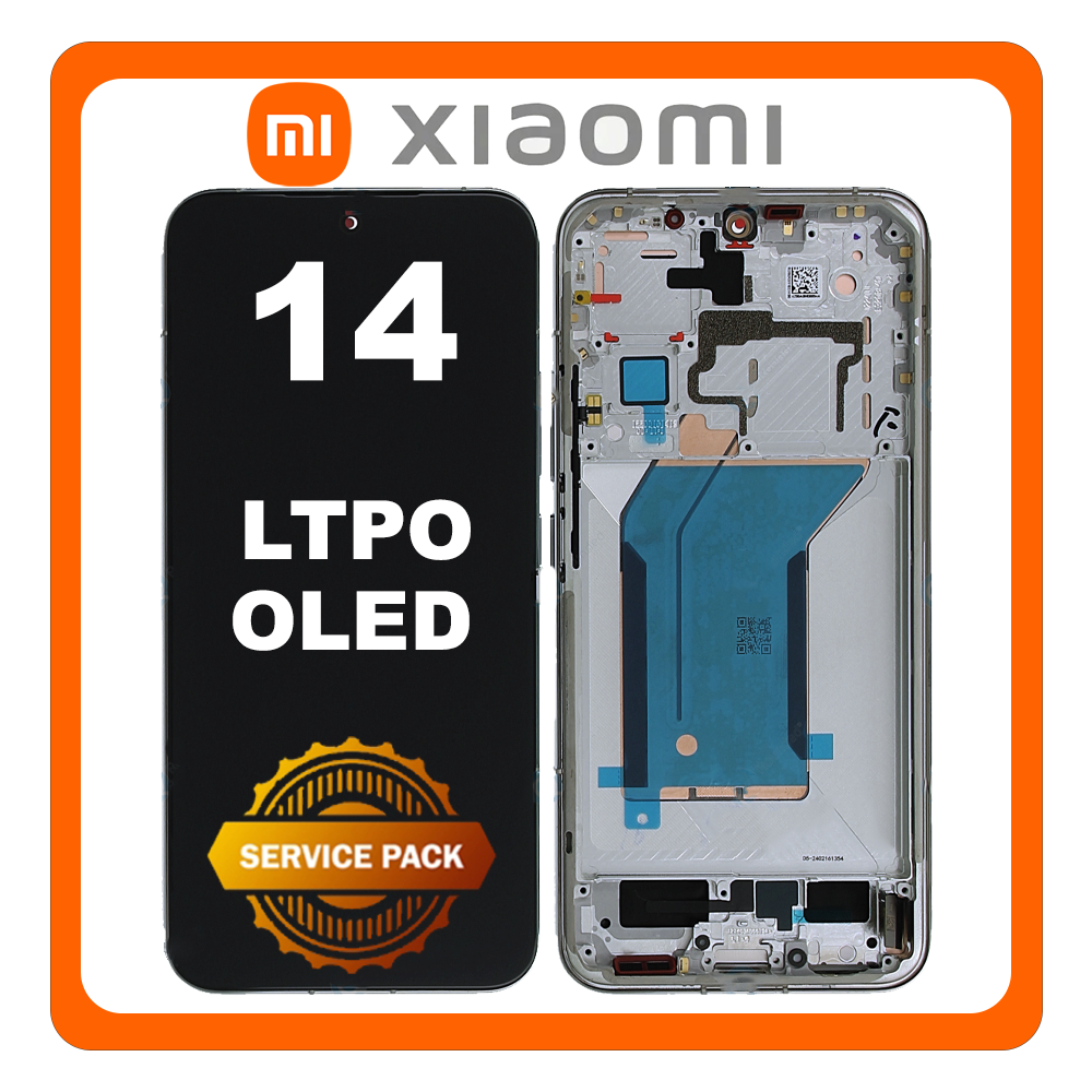 Γνήσια Original Xiaomi 14 5G (23127PN0CC, 23127PN0CG) LTPO OLED LCD Display Screen Assembly Οθόνη + Touch Screen Digitizer Μηχανισμός Αφής + Frame Bezel Πλαίσιο Σασί White Άσπρο 56000500N300 (Service Pack By Xiaomi)