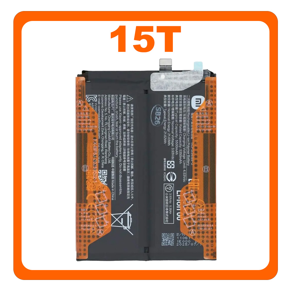 Γνήσια Original Xiaomi 15T (25069PTEBG) BP5J Battery Μπαταρία Li-Ion 5500 mAh 1330102000188B (Service Pack By Xiaomi)